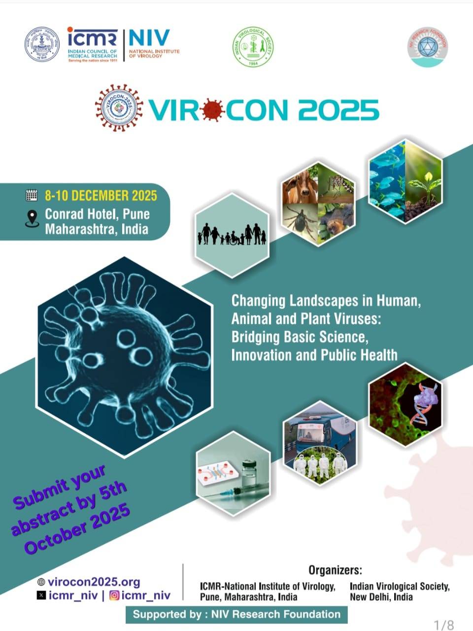 ICMR-NIV, Pune is hosting VIROCON 2025 from December 8 - 10, 2025 at Hotel Conrad, Pune. (Last Date of Submission: October 5, 2025)